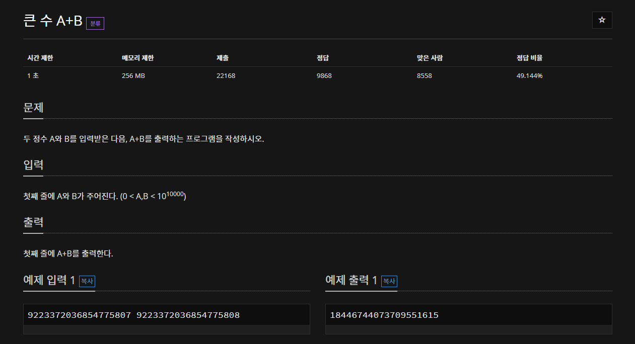 다른 언어의 경우 매우 큰 수가 들어오면 에러를 발생시키는 경우가 있다고 한다.. 그래서 출제된 문제같지만 파이썬은 괜찮음!